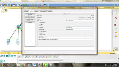 44. Setelah itu klik PC0. Pilih Config - FastEthernet0. Lalu isi IP